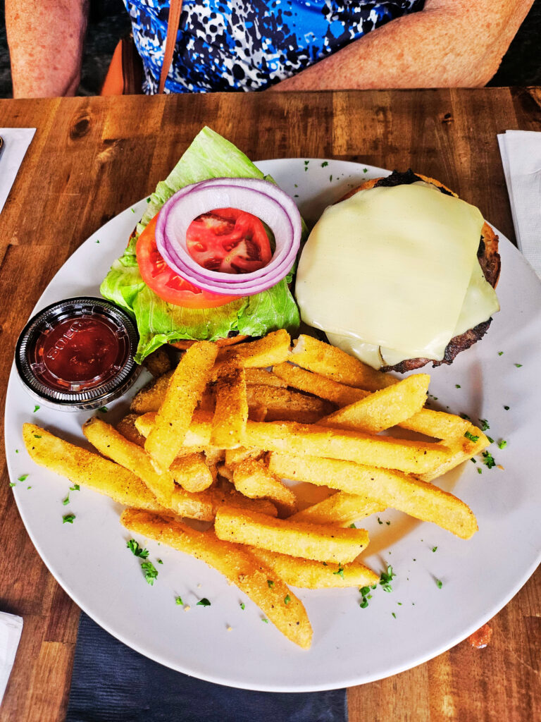 The burger was grilled to perfection—juicy and full of flavor—and the truffle parmesan fries were well-seasoned and a great addition to the plate.